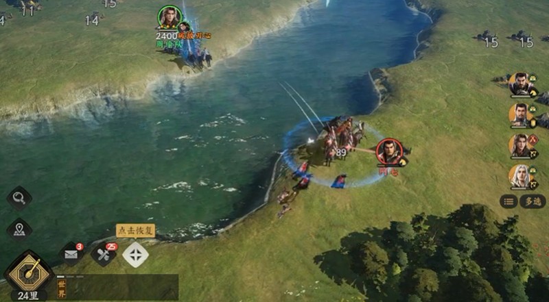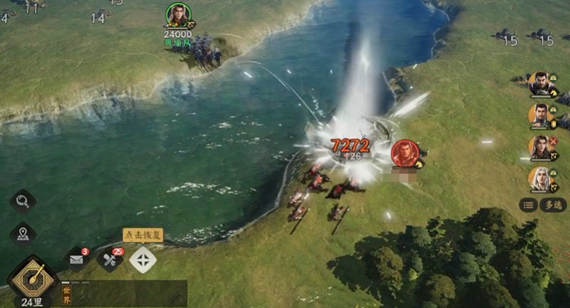 面对骑兵的反制,弓兵需要立即后撤拉开距离,触发警戒行军边退边打。此时应指挥盾兵上前嘲讽拦截,同时利用河流、悬崖等地形分割骑兵阵型,特别需要注意吕布等武将的无双反击,务必保持800单位以上的安全距离。
