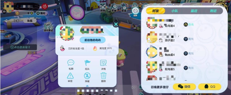 在蛋仔派对游戏中,每个玩家进入时都会被随机分配到一个岛屿中。如果和好友不在同一个岛屿,可以通过好友界面点击对方头像选择”前往对方岛屿”的功能。但有时候这个功能会无法正常使用,显示对方的岛屿被摧毁或其他错误提示。