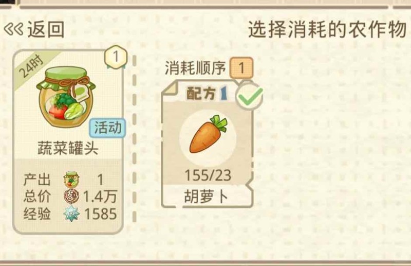 所以说做蔬菜罐头真的特别特别赚,真的强烈推荐等级够的宝子做这个