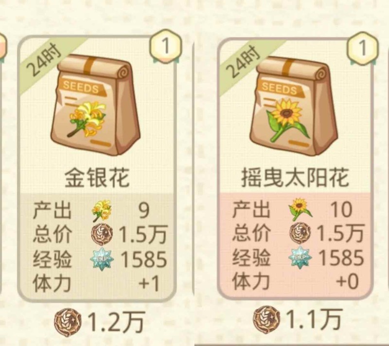 而像金银花和太阳花这种1w左右的种子,24h也只能赚3-4k而已。