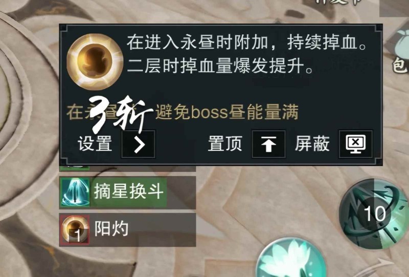 图4阳灼和阴蚀是进入/切换昼夜状态给叠的,不是团灭机制,也不是邪念,多叠比较痛,也是这个boss不支持慢慢磨的一种表现,包括切换昼夜后移除凝气读条的伤害也是,龙老三鬼面叠起来同理