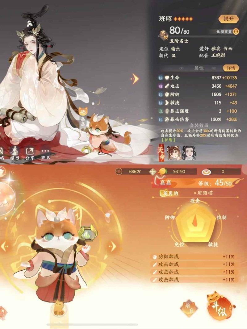 3)名士猫洗攻击加成词条,九世灵优先50级以上的金红蟹蟹,如果没有,带上一个满级的极品九世灵即可(带有减伤效果的,如赤金魂)
