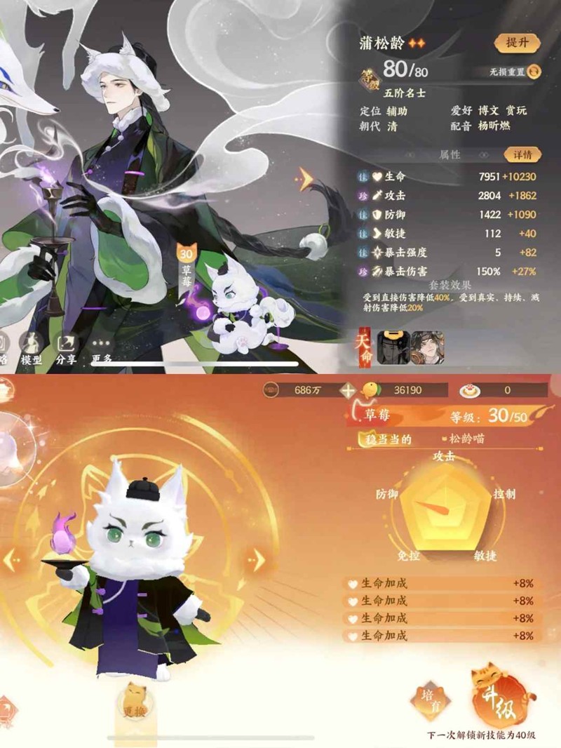 3)名士猫洗生命加成,九世灵带60级以上的极品九世灵即可。