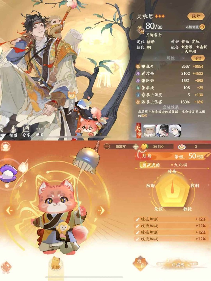 3)名士猫洗攻击加成,九世灵雷猴贝贝(推荐50级)