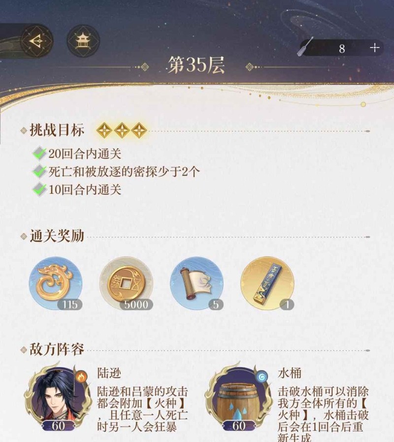 以上就是如鸢却扇歌地宫35攻略的全部内容了,更多游戏资讯,攻略内容敬请关注,您的支持是我们努力的动力!
