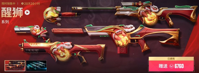 醒狮套装在无畏契约手游中的售价为6760点券,折合人民币约676元。这个价格包含了四款不同的武器皮肤以及配套的特效道具。如果玩家只想单独购买某款皮肤,每件武器的售价为1690点券,约169元。整体来说,这套皮肤的定价在同类产品中属于中等偏上水平。