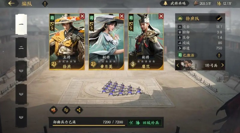 阵容搭配讲究兵种统一原则,开荒阶段弓兵队凭借强大的AOE伤害和燃烧效果表现突出,孙权、周瑜和吕蒙的组合适合推图作战。如果抽到吕布、赵云等骑兵武将,可以组建突击队专注单体秒杀。前期不必强求全五星阵容,部分三星武将如张宝、廖化也能承担前排坦克的角色。