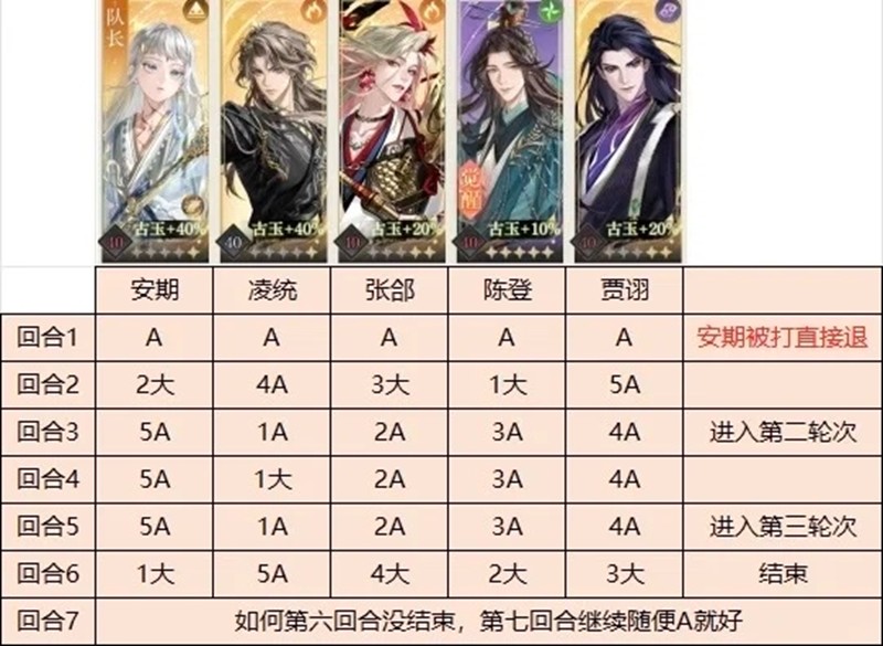 核心是安期在张郃开大前存活,因为没有二星的天赋,所以需要陈登打火,只亏10%的玉相当于没亏,跟打过了接下来每天就可以嘎嘎扫荡了