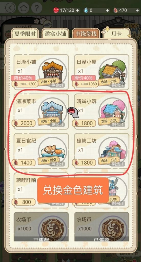 ①优先用叶片兑换一套农具(共需2400叶片)
