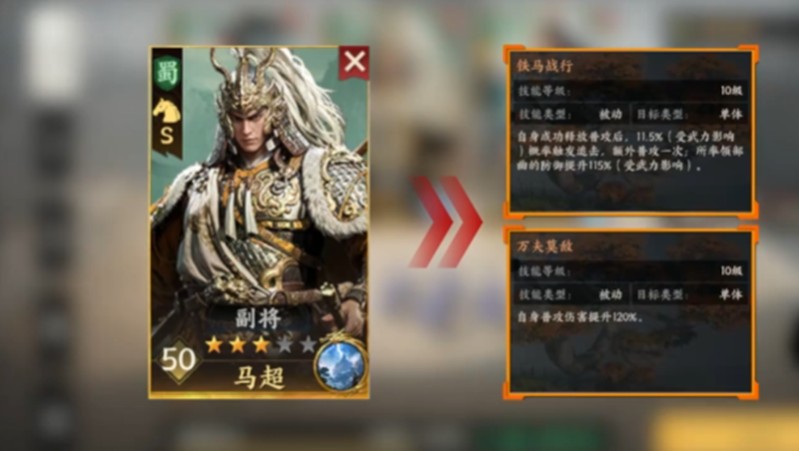 马超在队伍中扮演吸引火力的角色。锦甲神威形成的减伤护盾提供了良好的生存能力,西凉铁骑能够在冲锋时破除敌方防御。老当益壮技能确保在受到反击时也能打出有力的反击效果,有效牵制敌方注意力。