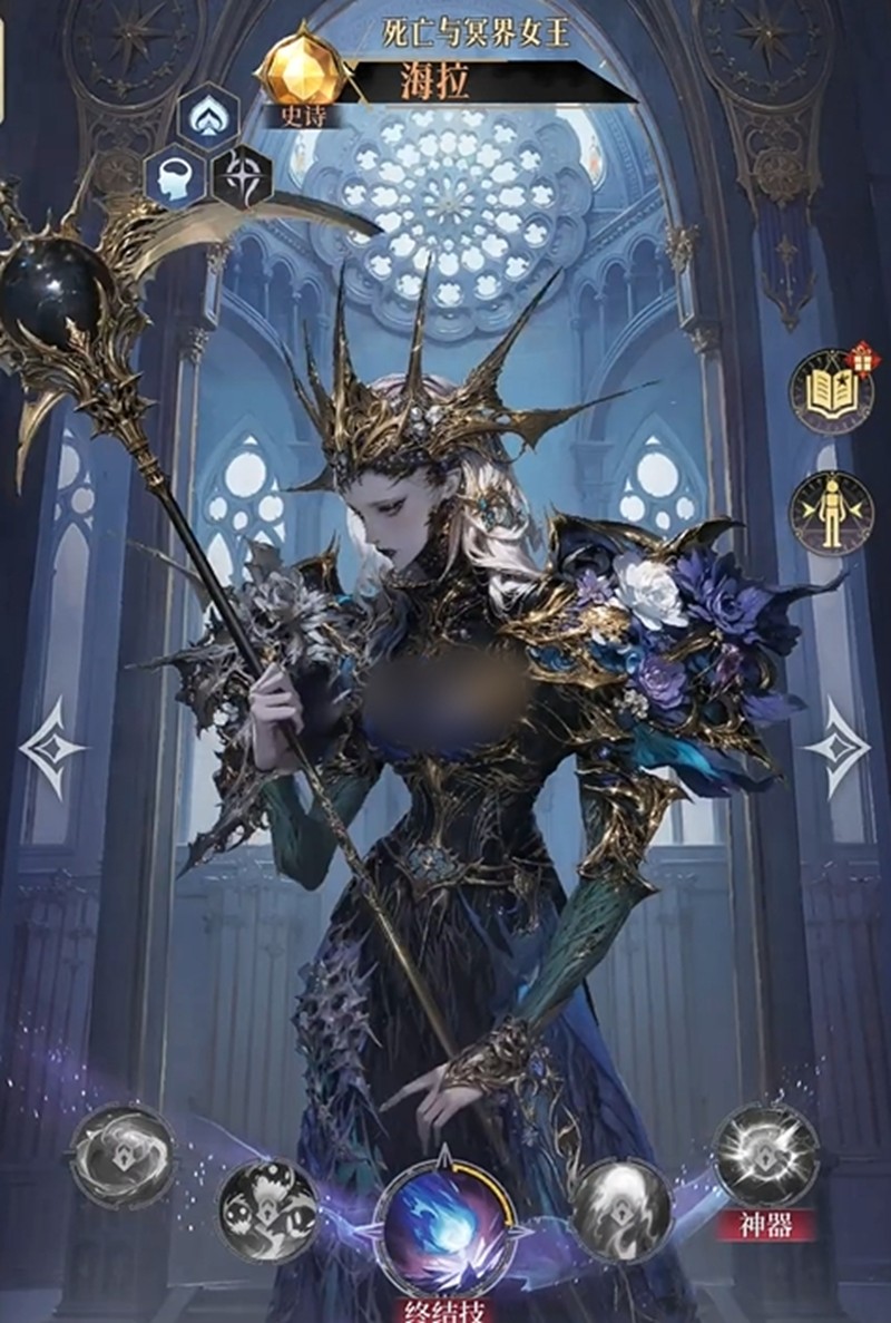 海拉是黑桃阵营中的法师角色,其具有偷取目标能量、生命的能力,并且在场上有单位阵亡时(无论敌友),她还可吸收阵亡单位的攻击力为自己所用并回复一定的能量,有着极为出色的持续作战能力,大招更是会唤出四枚巨大的火球造成超大范围的群伤。