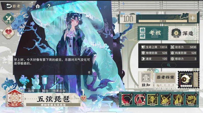 物华弥新游戏中有着众多角色,他们被称为“器者”,分为轻锐、远击、宿卫、构术、战略五个职业,特出、优异、新生三种稀有度,除了剧情加入的固定角色,玩家可以通过抽卡等多种方式获得。那么器者五弦琵琶应该怎么用呢?为你准备了一份攻略,一起来看看吧~