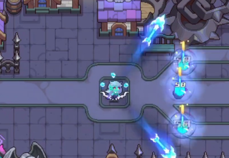 娜迦海妖的核心输出手段源于普通攻击与主动技能的联动。她的普攻以射出两支箭矢为特色,每次攻击可对目标造成稳定的物理伤害,随着等级提升,攻击频率显著加快,形成密集的火力压制。这一特性使她在前期清剿杂兵时游刃有余,尤其在面对集群敌人时,高频次的双箭齐发能快速削减敌方血量。