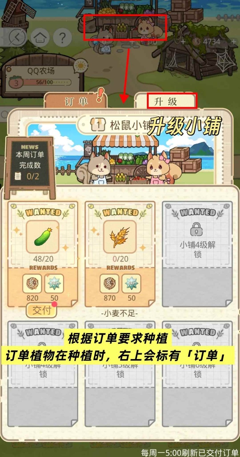 完成订单并交付,可获得[农场币]与农场经验