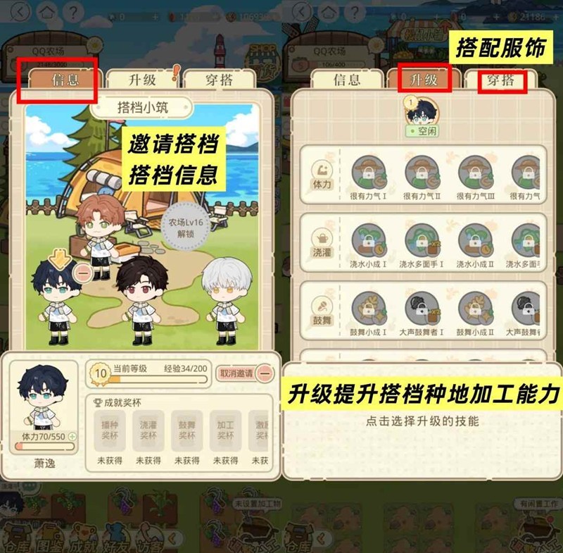升级:可为搭档解锁各类技能,强化耕作与加工能力