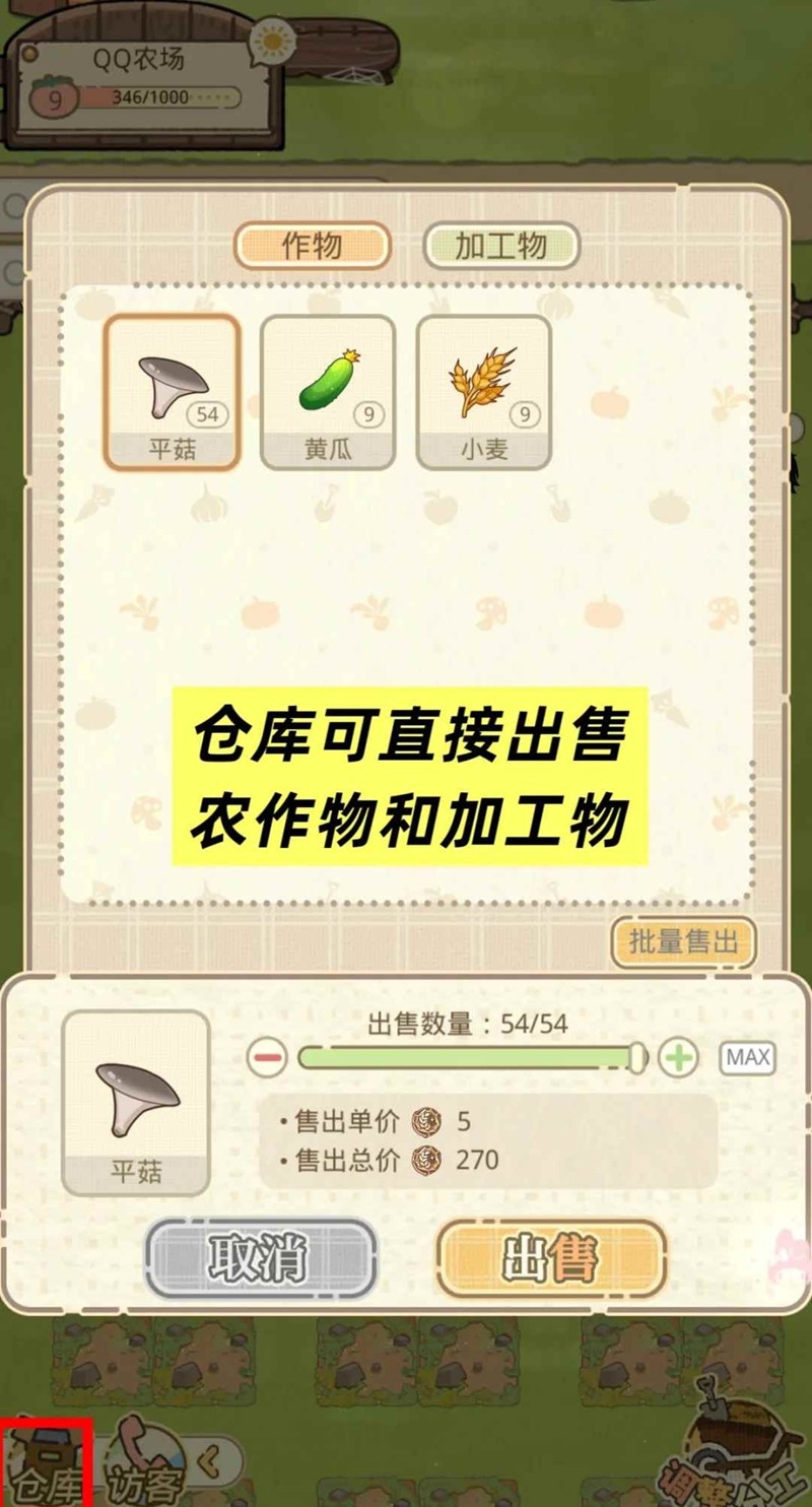 作物与加工物可于[仓库]中直接出售
