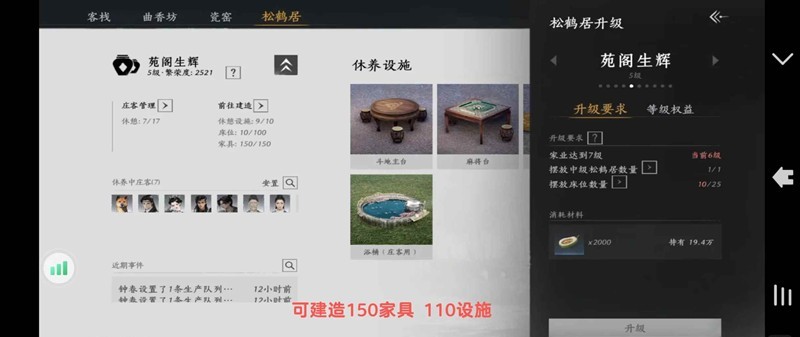 松鹤居可建造150个家具 110个设施 升级需2000囤囤粟