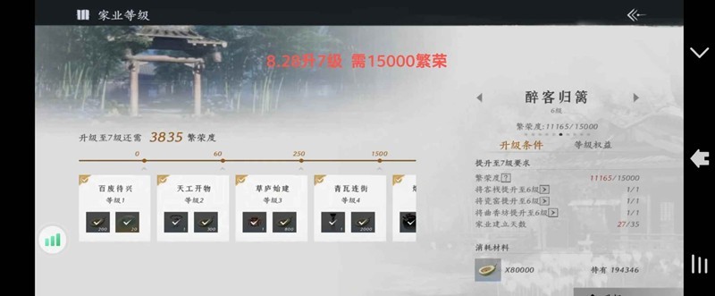 家业升级条件 需15000繁荣 需80000囤囤粟