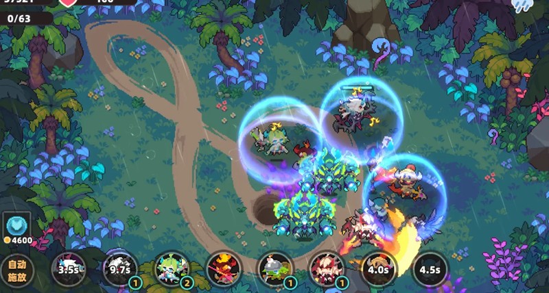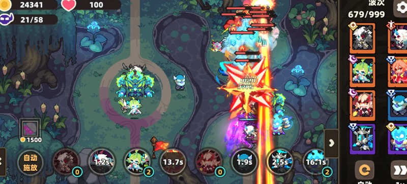 游戏采用自由布阵的策略塔防玩法,玩家需要调整角色站位和技能释放节奏,搭配不同类型的动态战斗词条来完成关卡挑战。首次通关后还会解锁速通挑战和零伤挑战两种模式,排名靠前的玩家可以获得额外奖励。