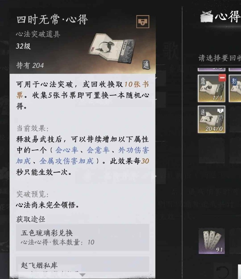 开封的赵飞烟,还有商人唐纶和河西阿巴的心法书页全买,没用的分解成书页。