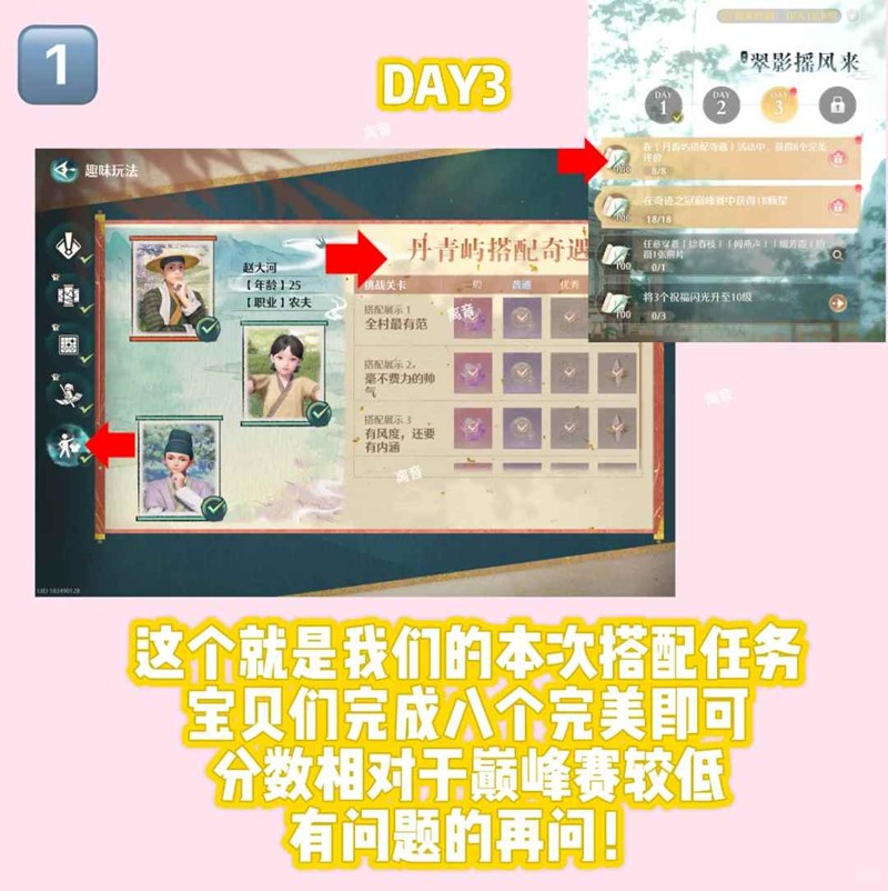 首先本次搭配挑战任务,一共九关,八个完美即可!