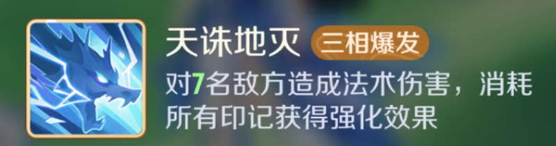 天诛地灭是天宫的终极爆发技能,能够一次性对七个敌方单位造成法术伤害。这个技能的效果取决于当前累积的水法和火法印记的数量关系。如果水法印记多于火法印记,攻击将附带法术穿透效果;如果火法印记占优,则会提高暴击率和暴击伤害。