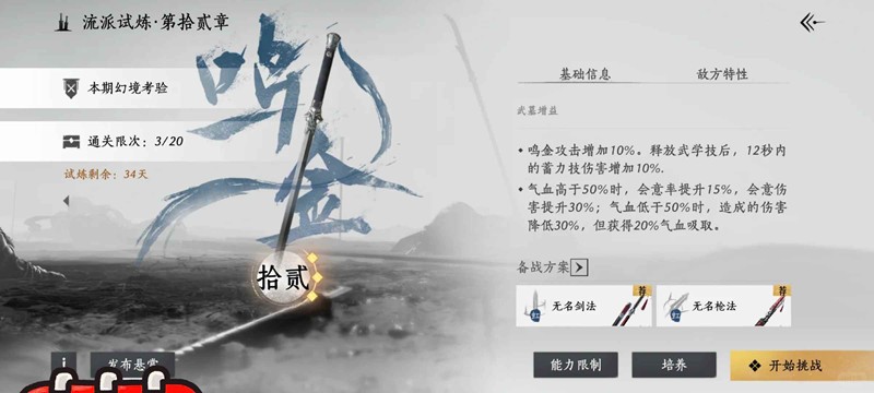 燕云十六声游戏中有太平武墓流派试炼挑战,玩家可以完成挑战来获得大量奖励及徽章称号,那么鸣金虹第十一层和第十二层应该怎么三星打过呢?为你准备了一份攻略,一起来看看吧~