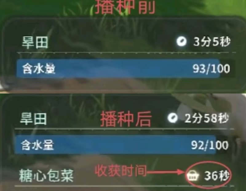 蓝色星原旅谣的农耕区域主要分为旱田和水田两种类型。旱田是基础的种植区域,适合栽培耐干旱的农作物,水分管理是其中的关键要素。土地含水量从100%降至0%仅需3分20秒,每次播种会消耗3%的基础水量。比如种植糖心包菜能够减少6秒成熟时间,随着水分持续流失,玩家需要采用简洁的操作逻辑来维持作物生长。