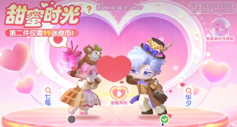 迷你世界七夕活动将于8月21日正式开启,其中最引人注目的是”七夕找搭子”互动玩法。玩家通过登录游戏、保持在线状态以及与好友一起探索迷你世界,都可以提升亲密度值。当亲密度达到一定数值后,就可以兑换专属称号”xx的小宝贝”和特别的”发射爱心”动作表情。