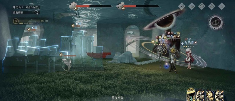 每3回合眩晕我方,精灵存活时神秘装置有闪避,回合结束时有一个精灵就给装置充能一次