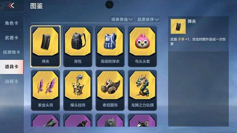 道具卡包含各种枪械配件、面饰等,其效果涵盖面比较广,基本都为特殊效果和基础数值的加成,金色卡牌的加成更多。而加成也分为两部分,枪械配件主要是对枪械的数值进行加成,需要角色卡装备枪械。而其它道具卡是对角色卡本身的数值进行加成,直接装备于角色卡即可。