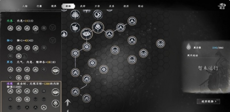 当然玩家也可以选择去探索的方法,在探索的过程中同样也可以知道这本秘籍的相应消息。玩家可以留意各地的茶馆,这里就是信息集散地可以迅速的去收集相应的传闻。不过这些传闻的刷新往往都会有随机性,是不是能够遇到携带密集的npc还是需要看个人的运气。相对来说会比较考验玩家对于信息的敏感。一旦在发现目标之后就可以主动上前,然后让对方把秘籍拿出来。值得一提的是,这并不是独立的,而是会深度的联动,当你在学习之后就可以打通经脉节点进一步的提升威力。