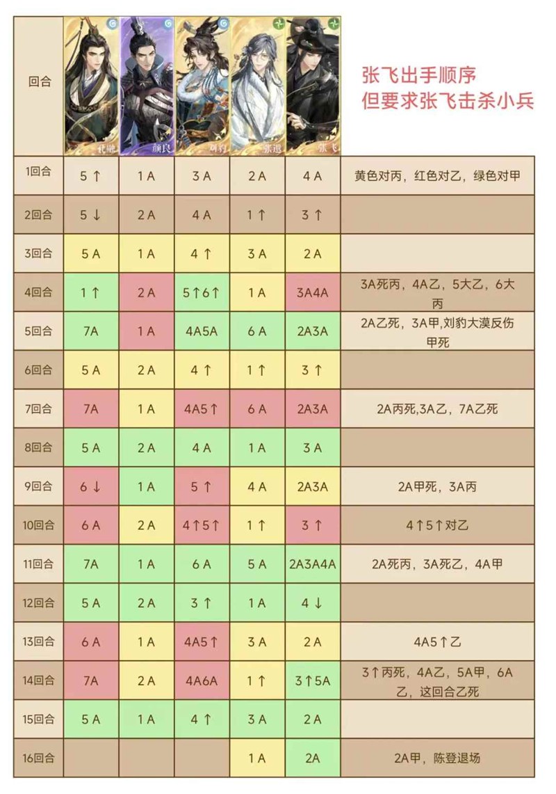 要点2:尽量让张飞收掉小兵,触发再动,不能让【甲乙丙】开出大招(伤害是足够的)。