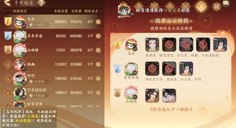 禁卡的话高星强力角色可以先不禁 思路一样的使君比较多 他们也会去禁这张卡 会浪费禁卡机会 个人建议尽量选择别的使君不太能想到的高星/强力角色避免重复