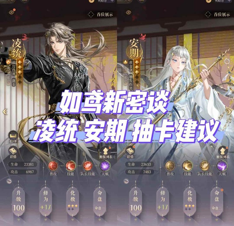 以上就是如鸢新密探安期凌统抽卡建议的全部内容了,更多游戏资讯,攻略内容敬请关注,您的支持是我们努力的动力!