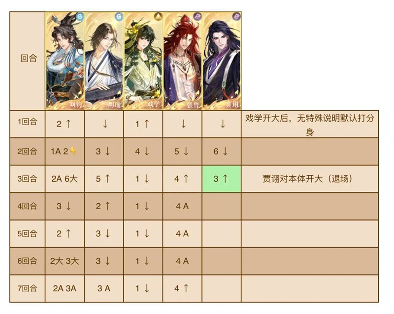 注意一下第3回合贾诩对着本体开大把自己劝退,这样打掉boss不会回血