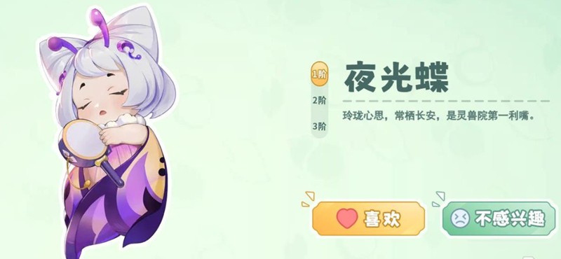 灵兽大冒险中的夜光蝶是一只拥有独特技能的灵兽,很多玩家都在关注这只灵兽的具体表现。作为游戏中人气较高的灵兽之一,夜光蝶凭借其特殊的技能效果和进化形态,在战斗中能够发挥重要作用。下面我们就来详细了解灵兽大冒险夜光蝶的各项技能特点。