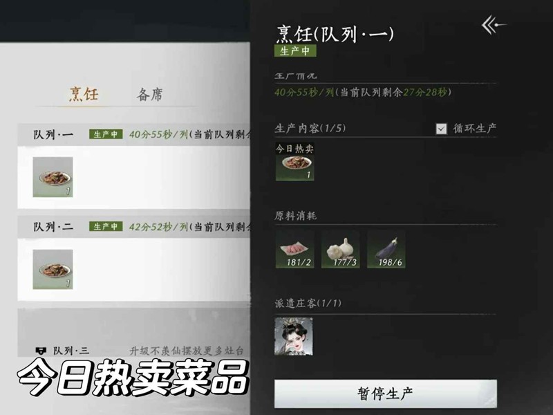 每周优先完成生金瓯五个订单,有的菜品可以商店购买的,剩下的留一条产业链给订单做,前期可以积累一下,这样下周订单就有原始积累了