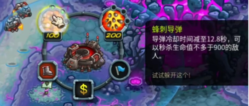 火箭枪手的蜂刺导弹技能可以将导弹冷却时间缩短至16秒。这个技能对生命值低于300的敌人能实现一击必杀,当技能升到满级时,秒杀范围扩大到900血以下的敌人,同时冷却时间进一步缩减至12.8秒。