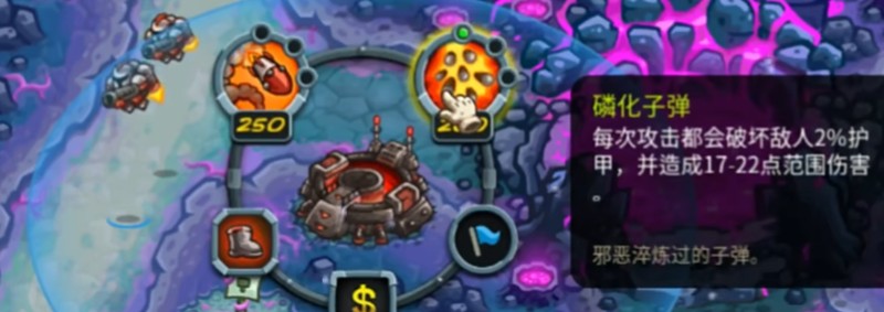 磷化子弹技能发射经过特殊处理的子弹,每发子弹能削弱敌人1%的护甲并造成范围伤害。技能升至3级后,每次攻击可破坏3%的护甲,范围伤害提升至21-27点。