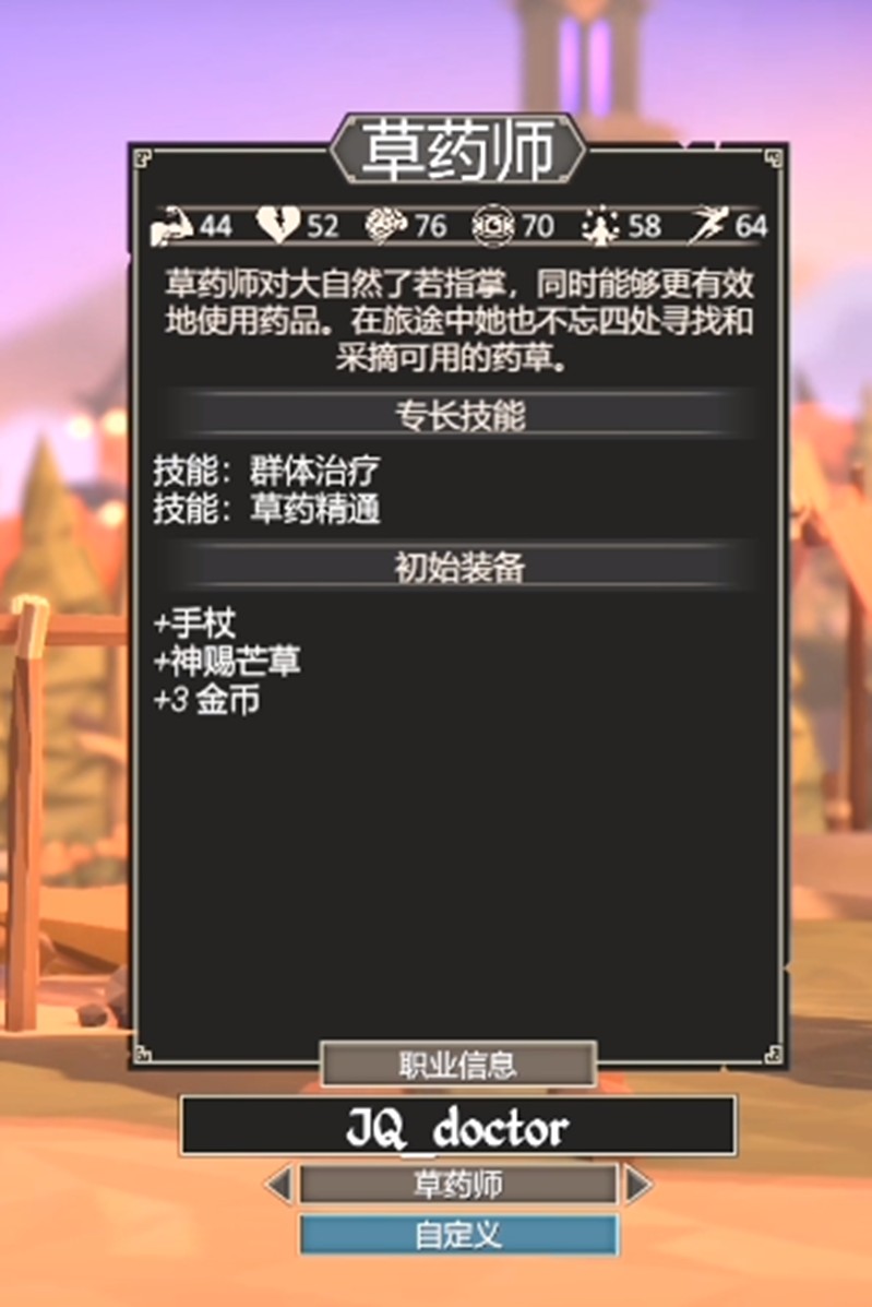流浪者是个能力均衡的隐藏职业,解锁方式是在游戏中援助该角色金币,然后在商店花费15个知识点购买。这个职业对操作要求较高,适合已经熟悉游戏机制的玩家使用。草药师则是另一个治疗型职业,擅长使用法术技能,能通过采集草药回复生命值,完成第一局游戏后可在商店用15个知识点购买。