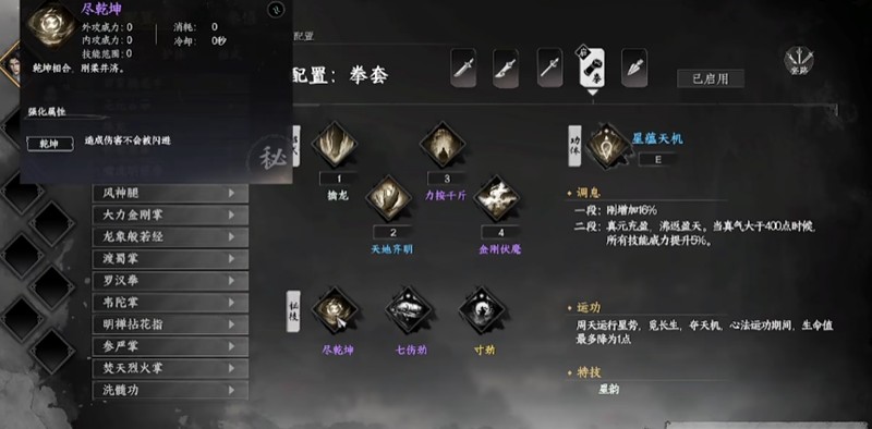 爻光古拳是前期比较容易获得的实用拳法,以真实伤害为主要特色。基础招式雷鸣破岳和天地齐明分别针对直线和扇形区域进行攻击,这些招式都能造成基于目标最大生命值的伤害。这种真实伤害效果可以无视敌人的防御属性,在面对高血量敌人时特别有效。星蕴天机功体的二段被动机制会在真气充足时提升招式威力,同时每次攻击还能削弱敌人的防御力。