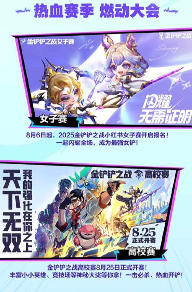 女子赛:8月6日起,2025金铲铲之战小红书女子赛开启报名!一起闪耀全场,成为最强女铲!
