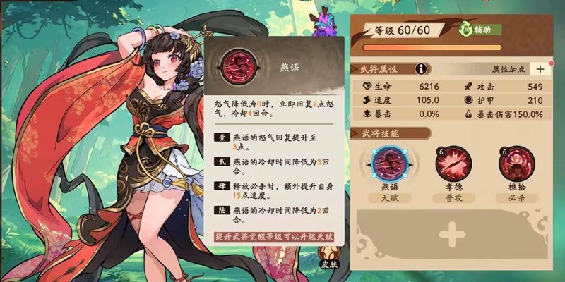 平民玩家必带的辅助,天赋燕语在怒气下降为0时立马回复大量怒气;必杀樵拾在消耗2点怒气后,获得怒气4点并且提速自身,没有怒气就不能释放必杀,含金量不用多说。