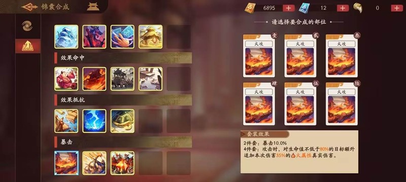 锦囊推荐:决斗四件套(火攻四件套)+暴击俩件套