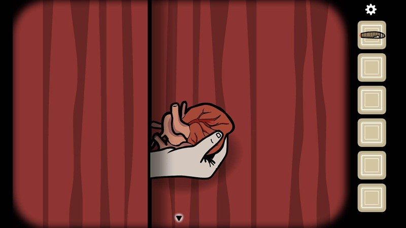 先用刀子点击红布里的人手,他会立即躲进去。再次点击后,他会递出一个心脏。记得最后要点击两次取回刀子,后续解谜还需要使用这个道具。