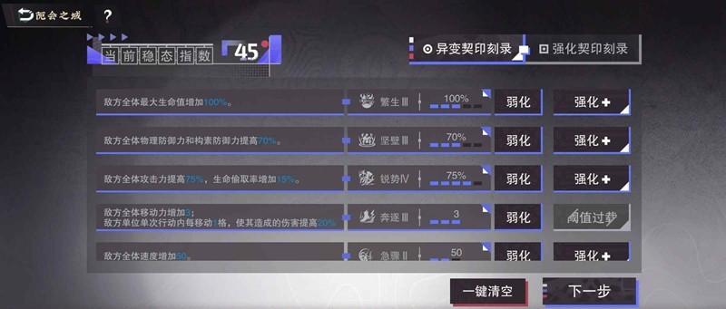 到这里就没有那么多要求了,大家按自己阵容正常打,第二页按照自己的阵容选buff就好啦。