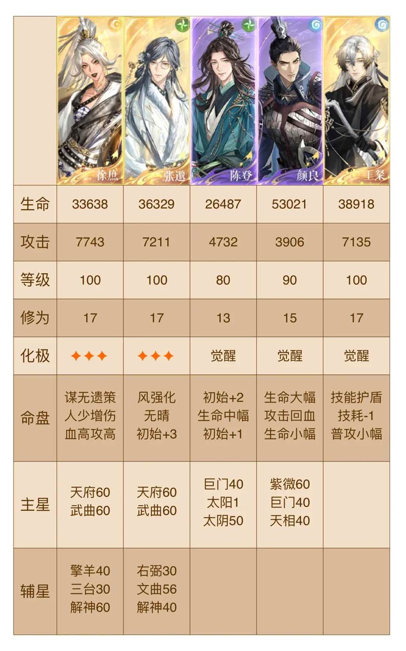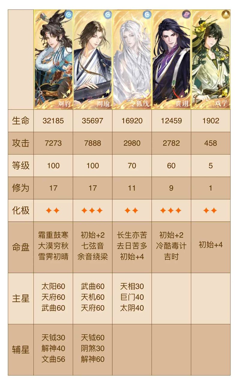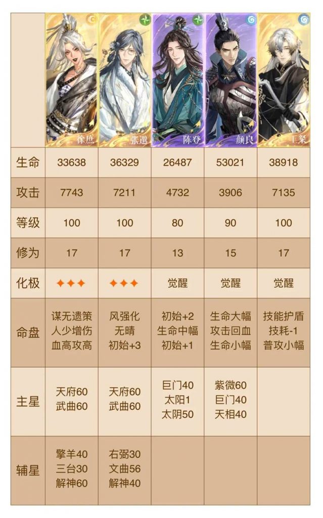 练度还可以再压一点,杨修能活下来就可以道同盘可以打,一星邈要手动下拉会少很多伤害,可以换张郃/荀彧,鲁肃这个打法刚需令狐茂戏学+4周瑜+1/+2,练度要求较高要保证贾诩令狐茂刘豹在对应回合能活下来,我这个练度只溢出40w