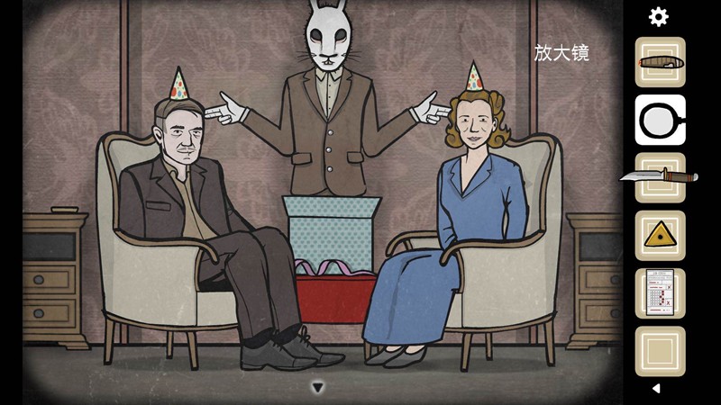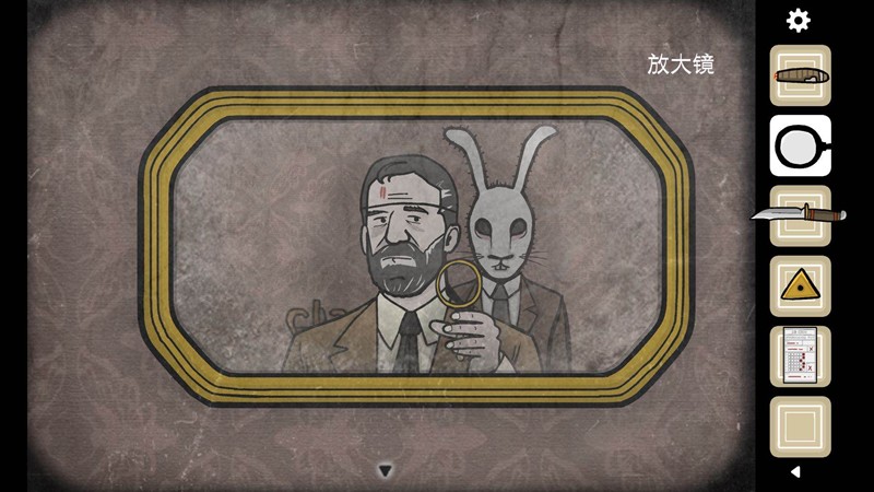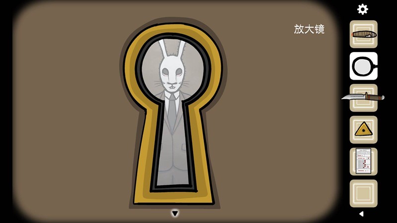 在游戏开始时,兔子先生会提示”就在门前”,这时需要通过门口的钥匙孔观察,而不是直接开门。这个设计巧妙地利用了视角转换的解谜思路。