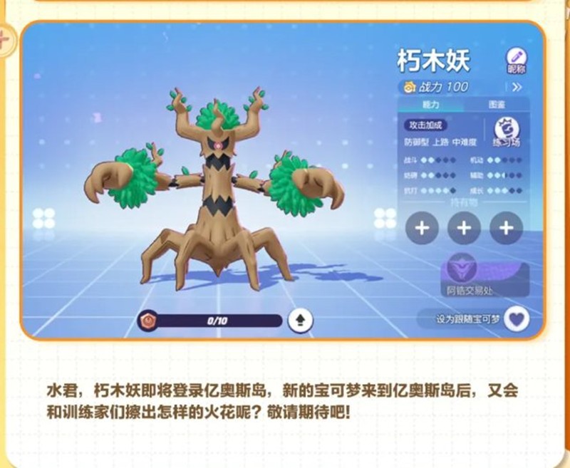 朽木妖也将在本次赛季中登场,这是一种草系和地面系的宝可梦,以其独特的外观和战斗风格而受到玩家的喜爱。